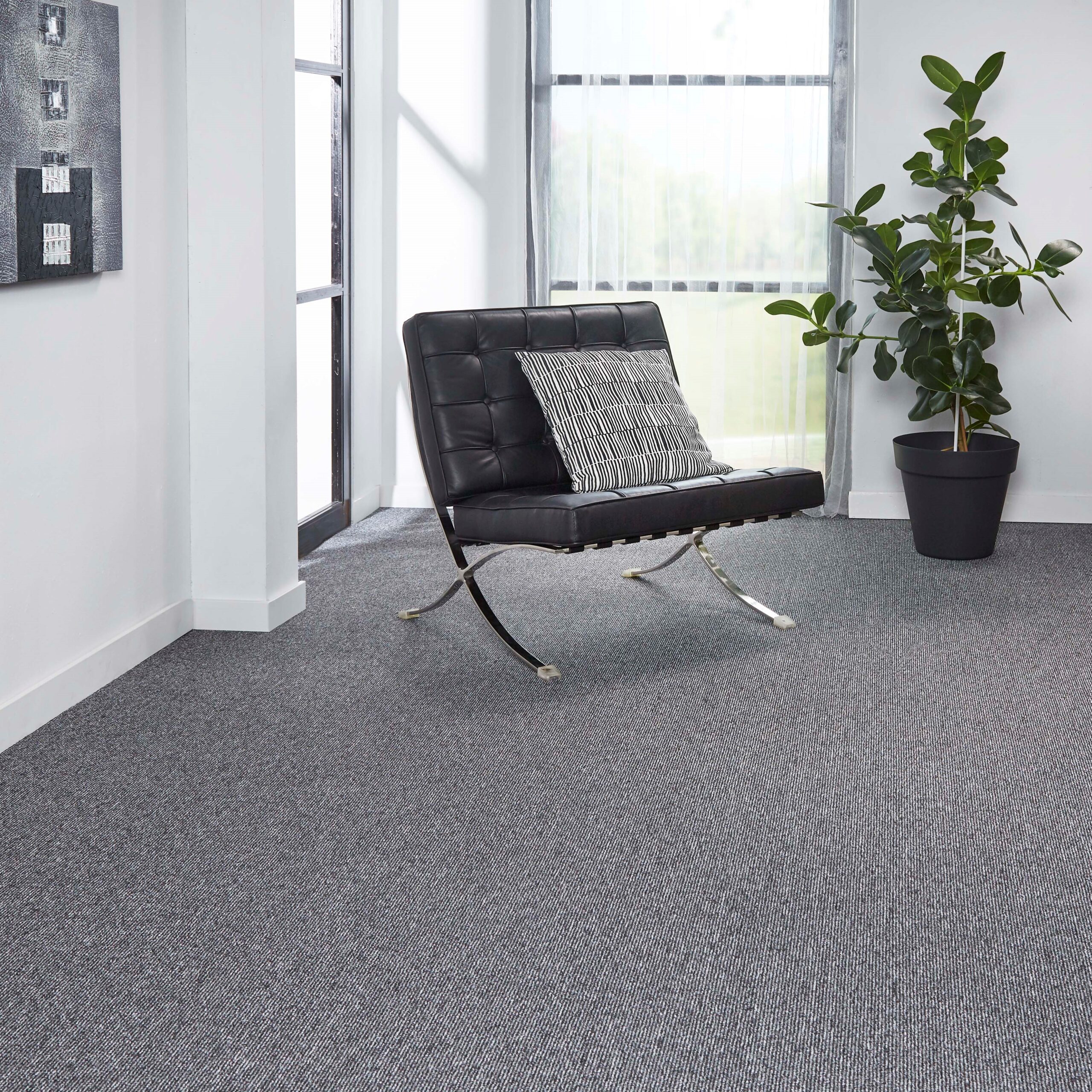 Monaco væg-til-væg tæppe giver et ensartet udseende og kan være med til at forbedre akustikken i rummet, da tæppet absorberer lyd.
